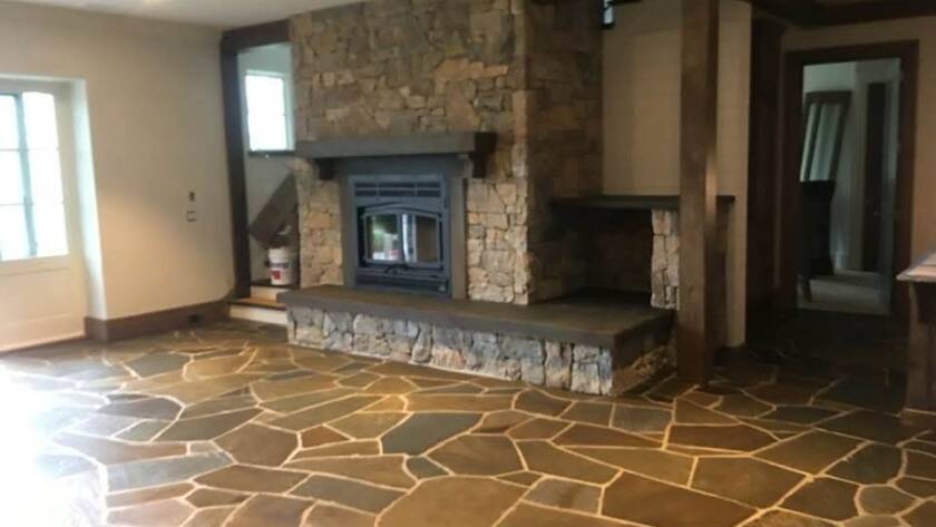 Renovation of a living room fireplace to include stone that matched the home’s exterior. Our team also designs and installs custom stone fireplaces that bring warmth and natural beauty to any space, from carefully selecting each stone to expert installation.